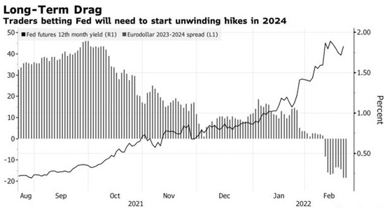由於通脹預期飆升和一些美聯儲官員的強硬態度,交易員正在重新審視美聯儲將在3月份加息50個基點的可能性。 但這些預期增加了人們對美國未來經濟增長受損的擔憂,以此,市場預計本輪加息週期將縮短,轉而又進入降息進程。