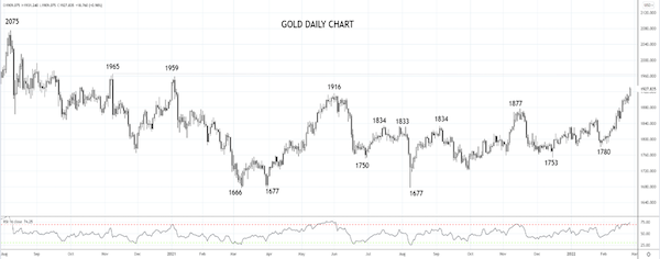短期內,緊張局勢似乎難以緩解,加之市場對沖通脹的意願強烈,金價上漲動能不減。 西卡摩爾表示,金價已升穿1916美元阻力位,或促使黃金繼續上行,攻向下個目標1950-1965美元。 若拿下,金價有望進一步反彈,再度測試2020年8月2075美元高點。