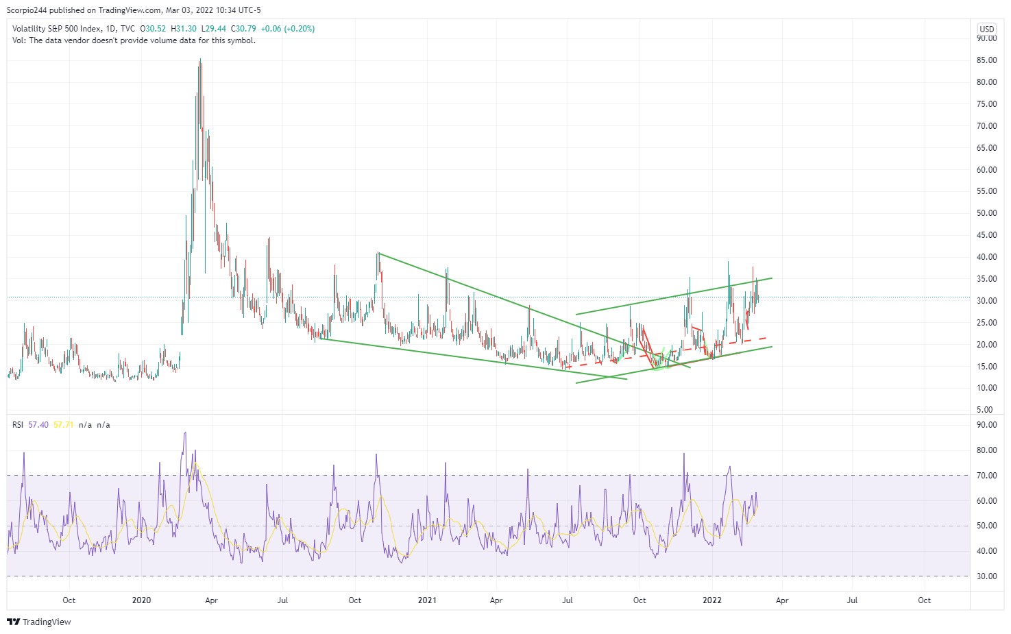 未來一段時間,市場波動率可能仍將維持在高位,這可能會讓很多投資者感到驚訝,因為VIX指數(恐慌指數)已經在30附近徘徊了一段時間。