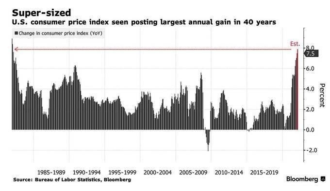 經濟學家預計,美國2月CPI年率將從1月份的7.5%升至7.8%,為1982年以來的最高水準。 由於供應鏈瓶頸和需求持續旺盛,近期美國物價壓力並沒有呈現出任何緩解的跡象, 除了二手車和汽油價格外,美國天然氣以及肉類、乳製品等價格也出現了兩位數的上漲。