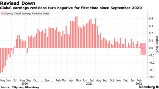 另外,花旗策略師Jamie Fahy表示,跟蹤分析師對企業利潤預期的全球指標自2020年9月以來首次轉為負值。 這可能會改變遊戲規則,削弱了他們對風險資產前景的信心。