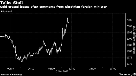 在烏克蘭和俄羅斯之間的談判未能向緩和衝突的方向取得進展之後,黃金價格抹去跌幅,回升至每盎司2000美元上方。