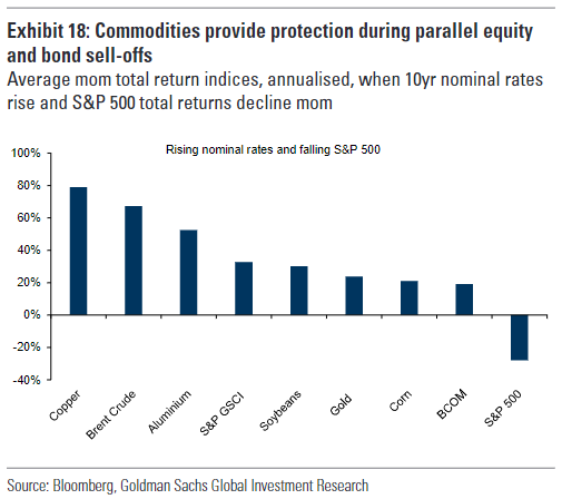 進一步,該團隊指出,這一背景下雖然風險資產和固定收益或會受到不利影響,但大宗商品可能會受益。 回測歷史數據該團隊發現,每當股票和債券的價格在利率上升的環境中呈正相關時,貝塔風險敞口往往會為大宗商品帶來正回報。