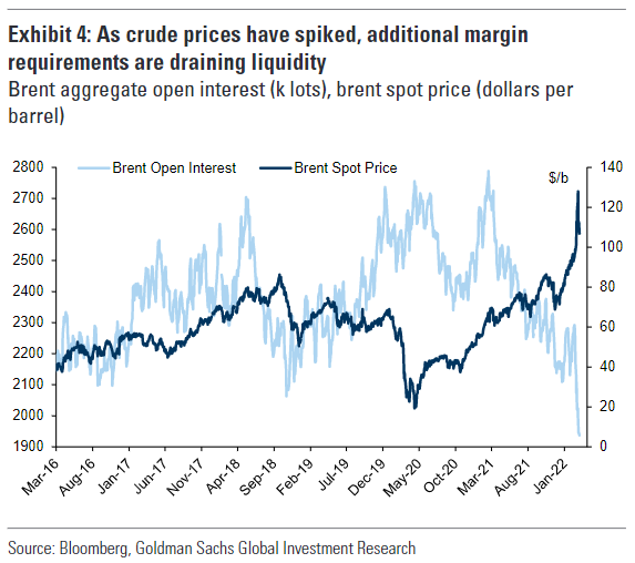 隨後,在LME鎳合約關閉后,投資者因價格飆升和波動性飆升而面臨更高的追加保證金要求,流動性緊縮由金屬商品市場蔓延至整個能源市場,導致石油和其他市場的持倉量大幅下降。 流動性的急劇回落,造成了大宗商品市場價格的進一步走低。