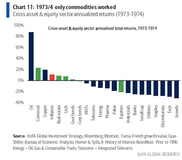 然而,短短幾年之後,在1973/4年的大滯脹衝擊中,只有大宗商品持續堅挺。