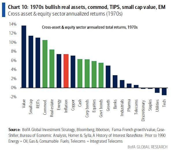 以史為鑒,Hartnett復盤了上世紀七十年代大通脹時代下的資產輪動。
