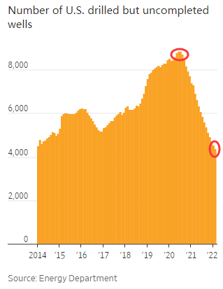 有業內人士指出,此前因為新冠疫情,已鑽探的可開採油井數量大減,甚至庫存枯竭,最近增加的鑽探量只是為了把可開採油井的庫存拉高至疫情爆發前的水準。