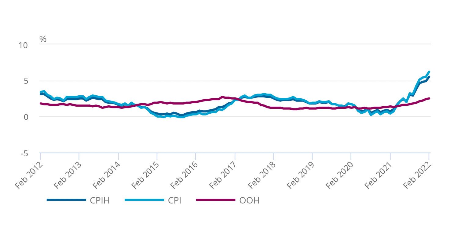2月包括業主自住房屋成本的通脹指標,調和消費者物價指數(CPIH)同比上漲5.5%,前值為4.9%。