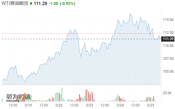 兩人的這番表態令WTI原油下破112美元關口,截止發稿時報111.28美元/桶,回吐昨日漲幅。 布倫特原油一度失守120美元並下逼118美元,較昨日收盤價最多跌2.6%,回吐亞盤期間1.8%的全部漲幅。