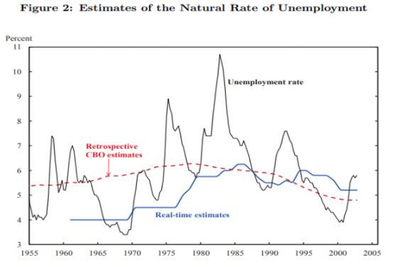 當時,美聯儲低估了所謂的NAIRU(非加速通脹的失業率),這意味著美聯儲認為自己有比實際更大的政策靈活空間。 NAIRU的實時估計比回顧性估計低1個百分點以上。