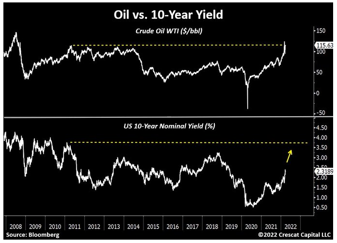 而另一處有意思的對比是,美國WTI原油週四在115美元附近震蕩整理,而上一次油價處於如此高位時,指標10年期美債收益率高達3.7%。 無論從哪個角度看,當前的債市拋售潮很可能都才剛剛進行到一半。
