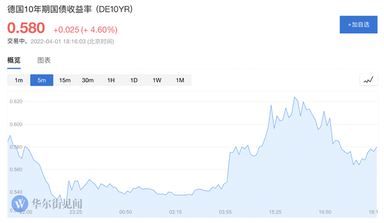 德國10年期國債收益率上漲3個基點至0.58%,此前一度攀升至0.62%。意大利10年期國債收益率的漲幅也有所縮窄。