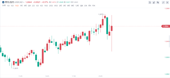 加拿大央行利率決議公佈後,美元兌加元寬幅震盪,振幅達46點。