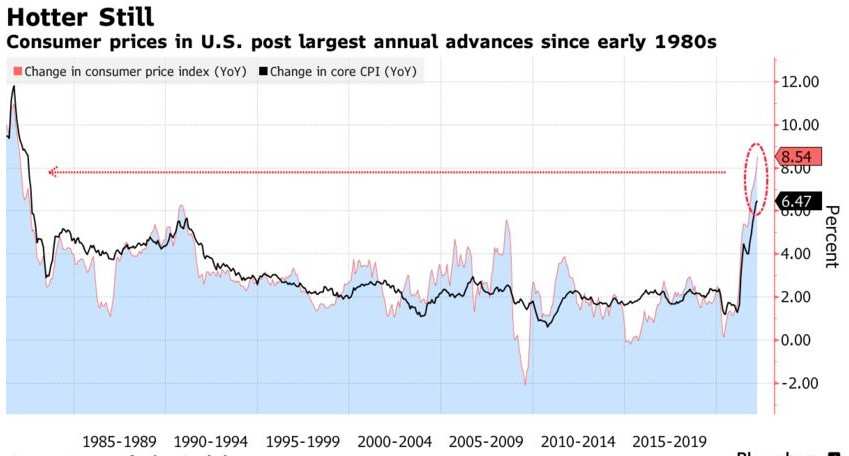 上周公布的數據顯示,英國和美國3月CPI增速錄得1980年代初以來最高水平。其次,通脹已經燒到全球多個國家地區,通脹已經成為全球全球幾十年來最快的通脹已經開始讓許多消費者望而卻步,尤其那些受食品和燃料價格上漲困擾的消費者。彭博的哈里斯民意調查(Harris Poll)顯示,約84%的美國人因物價上漲而計劃削減開支。