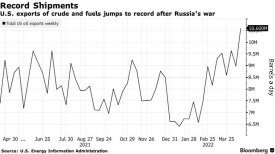 在西方國家加大對俄羅斯能源業製裁之際,美國的石油出口量已經悄然創歷史新高。