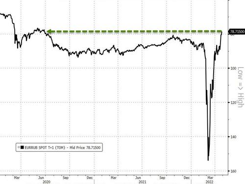而有意思的是,儘管俄歐“能源大戰”最終如何收場眼下尚未知,但在外匯市場一場“平行的博弈”似乎強弱已現:歐元兌俄羅斯盧布本週已跌破了79關口,刷新了近兩年低位……