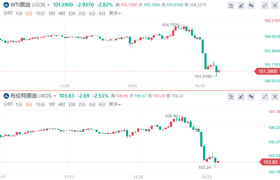 兩名歐盟官員週一表示,歐盟委員會可能向匈牙利、斯洛伐克提供俄羅斯石油禁運豁免。 在這樣的情況下,歐盟禁運俄羅斯能源對市場供應的影響恐打折扣,美、布兩油聞訊短線下挫2.2美元。 WTI原油日內大跌3%,逼近101美元關口;布倫特原油日內跌超2.5%,下破104美元關口。