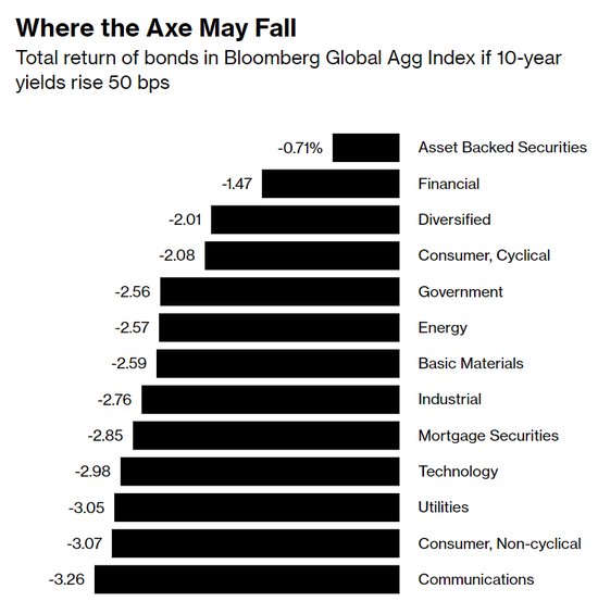 如果10年期收益率上升50個基點,彭博全球綜合指數中債券的總回報率如下: