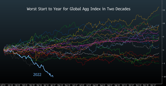 總而言之,包括全球投資組合經理和策略師在內的大部分MLIV Pulse受訪者都在為本周美聯儲會議的鷹派政策路線做準備。 這預示著,在經歷了至少二十年來最糟糕的開局之後,全球最大債券市場將面臨更多困境。