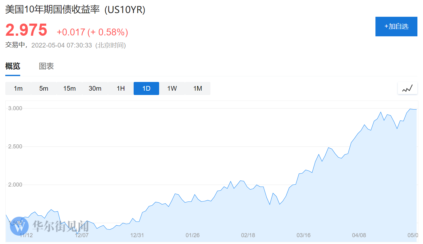 本周,債券市場的跌勢加劇,10年期美國國債收益率自2018年以來首次觸及3%。 一些投資者警告說,現在還為時過早,債券價格的下跌可能會持續下去。 在美聯儲上一次加息週期(結束於2018年12月)期間,10年期美國國債收益率直到加息週期的尾聲才觸及3%。