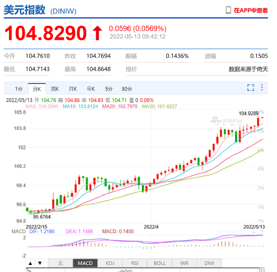 美元指數拉升逼近105關口