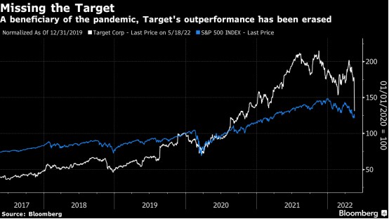 昨日美股零售巨頭股價全線遭重挫,塔吉特(153.43-8.18, -5.06%, )(TGT.US)公佈遠不及市場預期的財報后,盤中一度跌超26%創下自1987年10月“黑色星期一”以來最大跌幅, 截至收盤跌近25%,創2020年10月來最低股價,抹去疫情以來大部分漲幅。