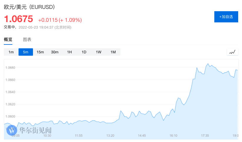 拉加德的言論促使歐元兌美元上漲1%,至1.0675美元。