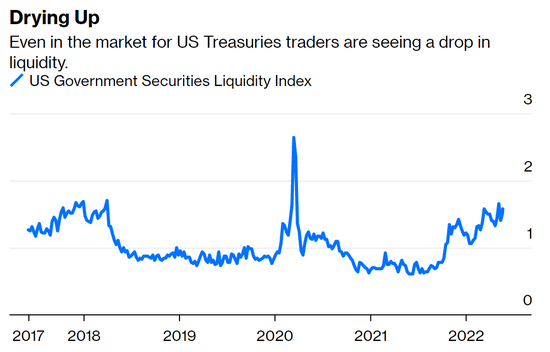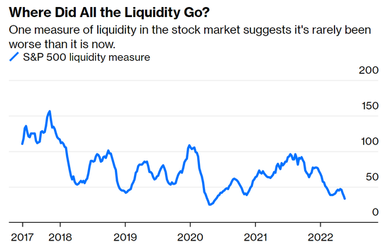 在期貨市場,保證金的要求也會影響流動性。 隨著保證金增加,投資者無需追加保證金就能交易的合約數量會減少。 正如彭博社的卡梅倫(Cameron Crise)上周指出的那樣,當前股市的流動性是有史以來除了金融危機和疫情早期之外最糟糕的。