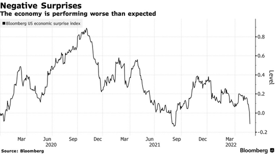 增長前景正變得黯淡,經濟數據落後於預期。 自2020年新冠肺炎疫情爆發以來,美國經濟意外指標再次達到負值。