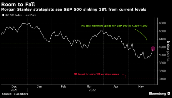 摩根士丹利預計標普500指數本輪反彈最多可升至4,250點至4,300點,較週五收盤位高3.4%。 納斯達克(12081.3912-49.74, -0.41%, )和小盤股的百分比漲幅可能相對較大,因為此類情形下往往是如此。