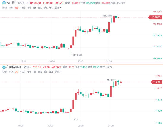 會議結果公佈后,原油不跌反漲,WTI原油一度觸及116美元/桶,布倫特原油觸及117美元關口。