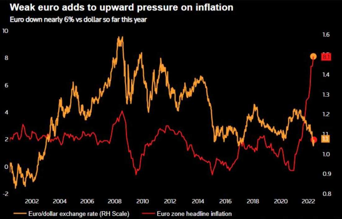 隨著5月份歐元區通脹率升至8.1%,是歐洲央行2%目標的四倍,歐洲央行將面臨大幅加息的壓力。