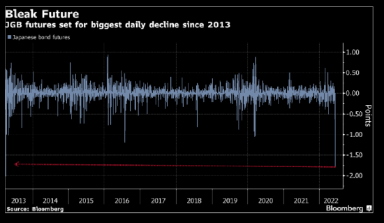 除了增加例行操作中所有期限的購買規模外,日本央行還宣佈將在週四和週五無限量購買所謂的最廉價交割10年期債券。 10年期債券期貨大幅下跌,勢將創下2013年以來的最大跌幅。