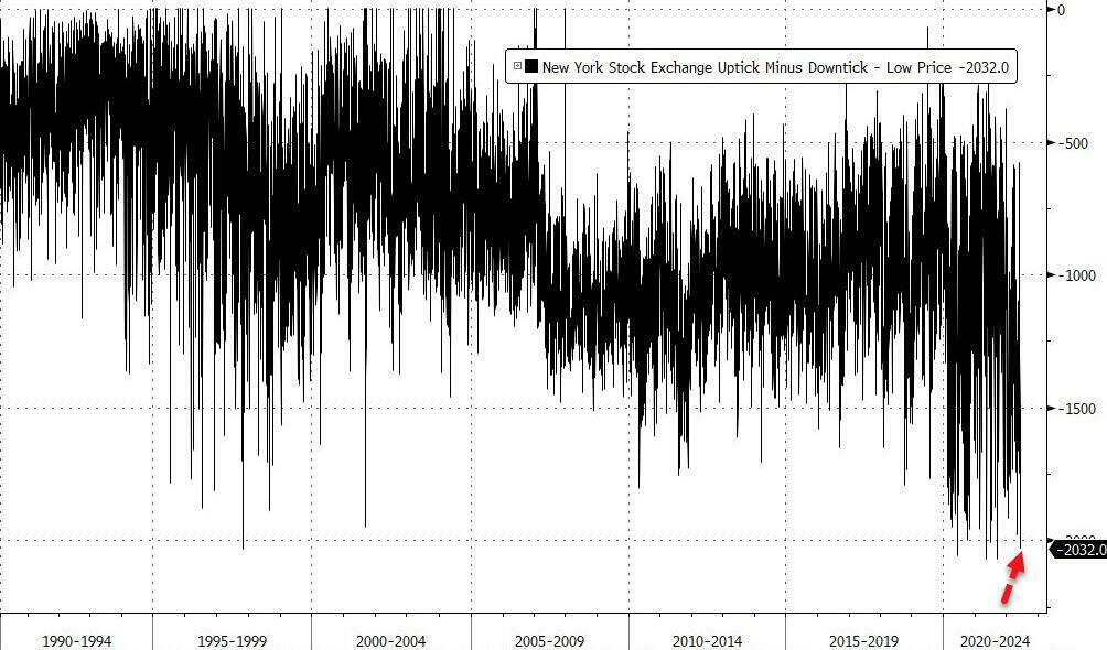 在那之後,上週四,市場又出現了一大波恐慌賣出以及清倉,美股的TICK讀數低至-2057,是有記錄以來的第四大規模的一波拋售。