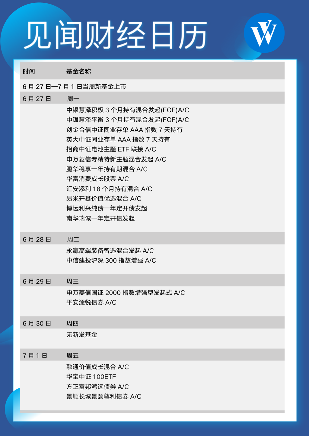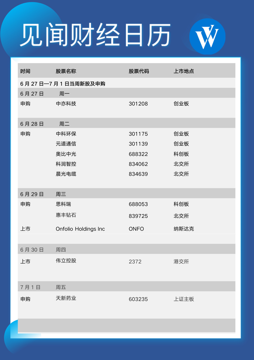 6月27日至7月1日當周重磅財經事件一覽,以下均為日期:::
