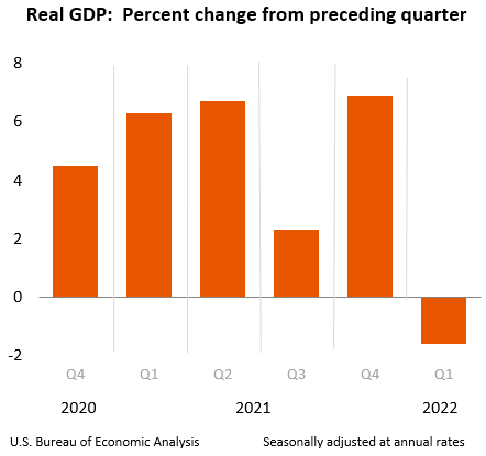 6月29日週三,美國商務部經濟分析局(BEA)數據顯示,美國一季度實際GDP年化季環比終值-1.6%,較5月份公佈的第二次預估下調了0.1個百分點。 而2021年第四季度為正增長6.9%。
