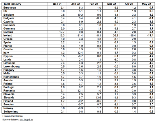 從國家來看,芬蘭(+5.5%)、愛沙尼亞 (+5.4%) 和立陶宛 (+4.9%)PPI月度漲幅最大; 而愛爾蘭 (-19.4%)、斯洛伐克 (-4.4%)、荷蘭 (-0.8%)、保加利亞和法國 (均下降0.1%)的PPI月度降幅最大。