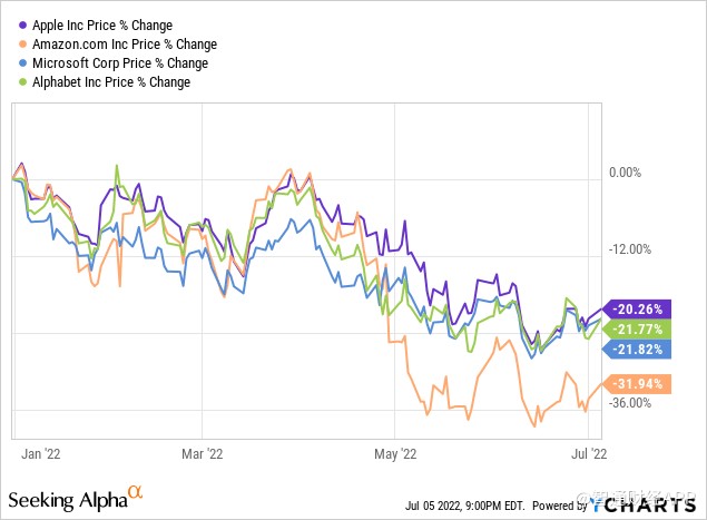 標普500指數跌入熊市,跟這些重要的成分股的慘烈走勢分不開。 儘管市場情緒悲觀,Lau認為,這些股票仍相對有彈性。