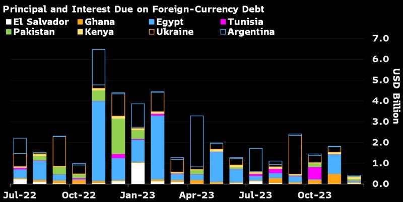 如今,對於債務違約的關注則轉移到了薩爾瓦多、迦納、埃及、突尼西亞和巴基斯坦等被認為很容易債務違約的新興市場國家。 目前,新興市場債務違約的保險成本已飆升至俄烏衝突以來的最高水準。 世界銀行首席經濟學家Carmen Reinhart對此表示擔憂,他表示:「對於低收入國家來說,債務風險和債務危機並非是假設。 事情已經接近發生了。 ”