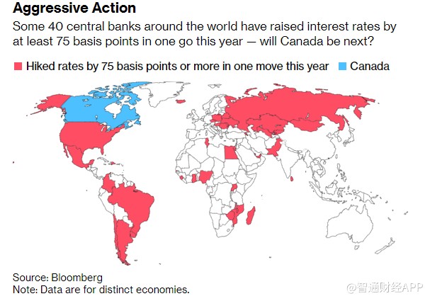 全球約40家央行今年已一次性加息至少75個基點