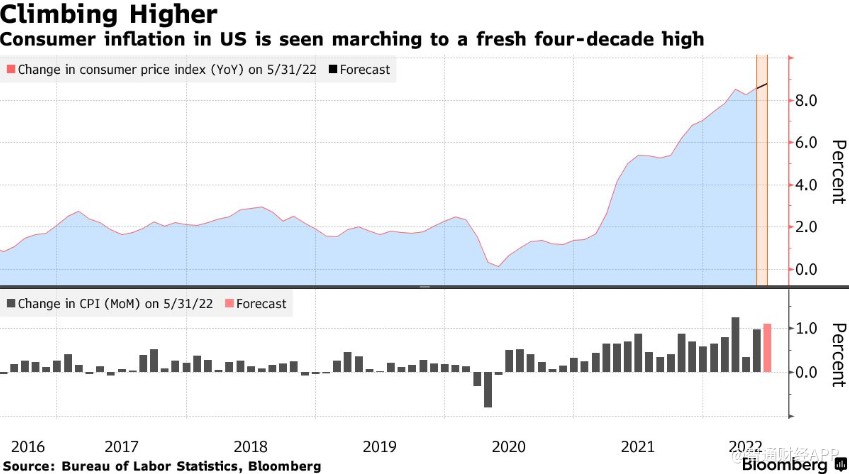經濟學家預測,備受關注的美國6月CPI可能同比增長近9%,創40年來新高。 與5月份相比,CPI預計上漲1.1%,這是四個月來第三個月漲幅超過1%。