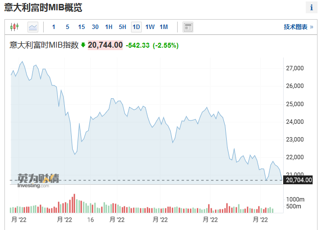 此外,義大利股市持續下挫,截至發稿,義大利富時MIB指數跌超2%。 其中銀行股跌幅最大,銀行債券也領跌彭博泛歐高收益指數。