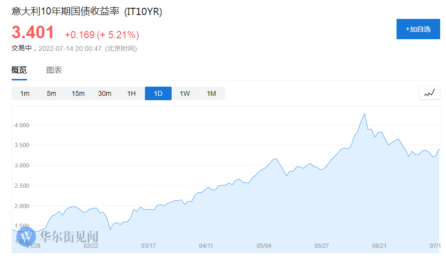義大利10年期國債收益率上行25個基點至3.40%,使意、德息差擴大至一個月以來的最高水準。 自歐洲央行退出超寬鬆政策,義大利債券已經承受了數月之久的壓力。