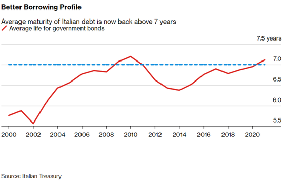 義大利還算“堅韌”:義大利的主權債務期限平均超過7年,這意味著即便主權債務危機爆發,義大利也遠沒有希臘那麼不堪一擊。 考慮到歐元區第三經濟體的規模和作為歐盟初創團隊成員的地位,義大利與希臘的政治類別生來不同。