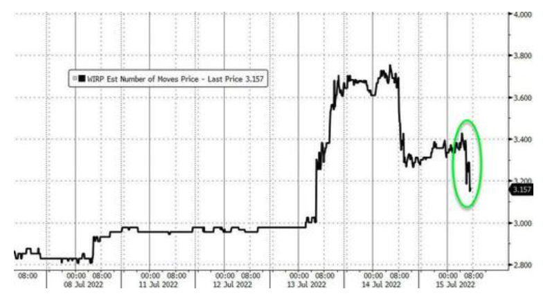 然而最新的密歇根消費者信心數據公佈后,加上近兩日幾位美聯儲鷹派高官給100個基點加息降溫,市場對美聯儲在7月暴力加息100個基點的預期,從前幾日CPI公佈后的75%,暴跌至僅15%,這推動美股盤中走高。