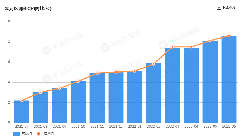 歐元區6月調和CPI同比8.6%,初值8.6%,前值8.1%; 核心調和CPI同比初值3.7%,終值3.7%,前值3.8%。