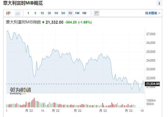截止發稿,義大利富時MIB指數跌幅已經擴大至1.7%,此前一度上漲近1%。