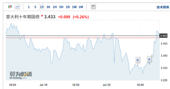 與此同時,義大利國債轉跌,抹去了稍早前的全部漲幅。 10年期國債收益率上行超過20個基點,現報3.433%。
