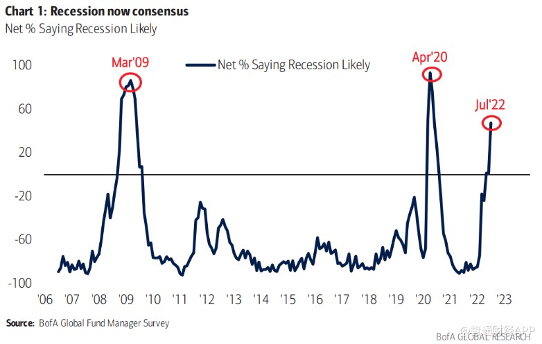 以Michael Hartnett為首的美國銀行策略師在報告中寫道,全球經濟增長和(6.72-0.04, -0.59%, )利潤預期降至歷史低點, 而衰退預期則處於自2020年5月疫情引發的經濟放緩以來的最高水準。