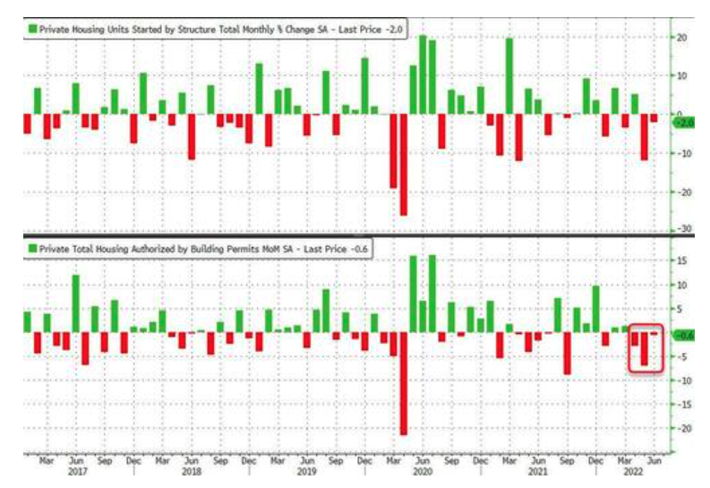房屋按揭貸款利率飆升令可負擔能力崩潰,美國新屋開工和營建許可自2006年以來的最高水準大跌,當前處於2021年10月以來的最低水準。
